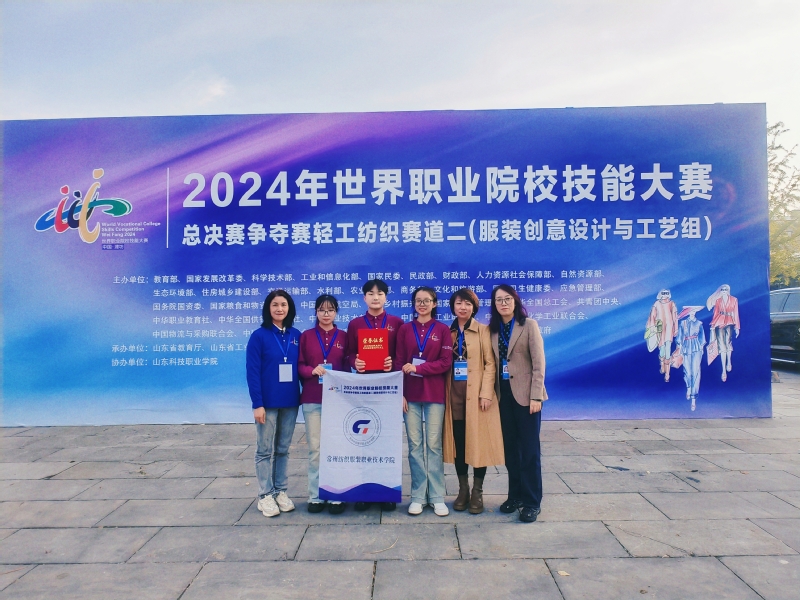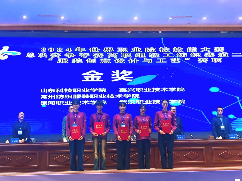 10月23-25日,2024年世界职业院校技能大赛总决赛争夺赛高职组轻工纺织赛道(二)服装创意设计与工艺赛项在山东科技职业学院开赛。本次大赛主题为“技炫青春,能创未来”。来自全国25个省(直辖市)共50支队伍参赛。我校雍定圆(服设213A班)、何若然(服工213B班)、巫一丹(服设233H班)(指导老师:穆雪梅、徐君)不畏强手、奋勇拼搏,斩获金奖!