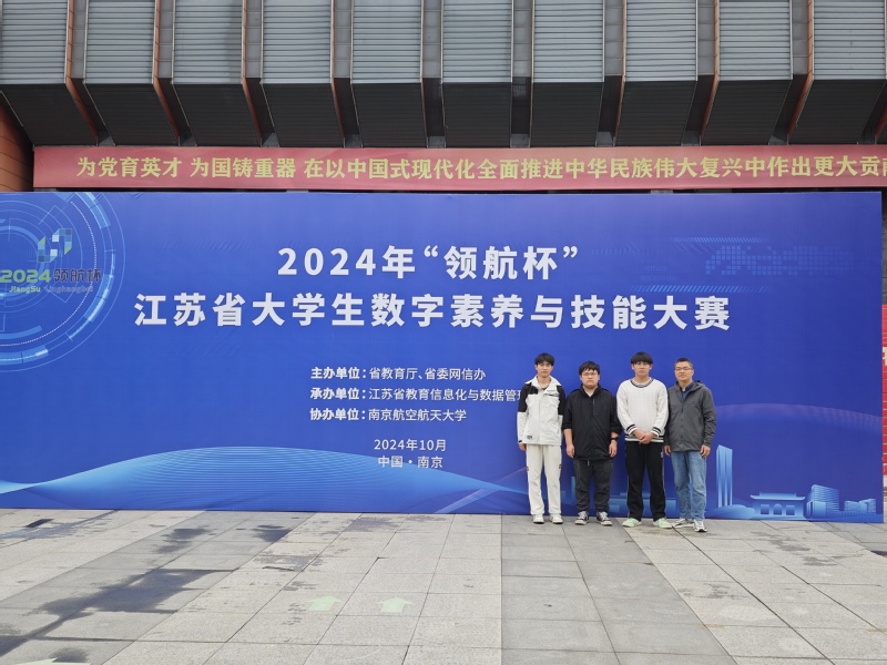 2024年10月27日,由省教育厅和省委网信办主办,江苏省教育信息化与数据管理中心承办的首届“领航杯”江苏省大学生数字素养与技能大赛在南京航空航天大学成功举行。全省36所高职院校的学子在“网络信息安全”赛项中展开激烈角逐。来自我校智能制造学院的刘威(计网2231)、常桂坤(计网223C)、嵇柯(计网2231)在指导老师游小荣的带领下,以沉稳的发挥赢得全省一等奖的优异成绩。