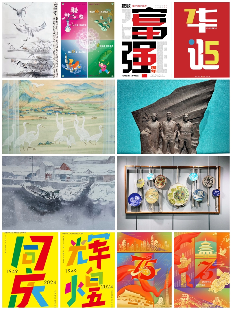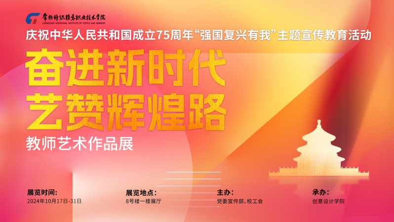 盛世华诞,举国同庆。为庆祝中华人民共和国成立75周年,由我校党委宣传部、校工会联合主办,创意设计学院承办的“奋进新时代•艺赞辉煌路”教师艺术作品展,于10月17日起在创意设计学院8120展厅展出,通过艺术的形式向祖国华诞献礼。