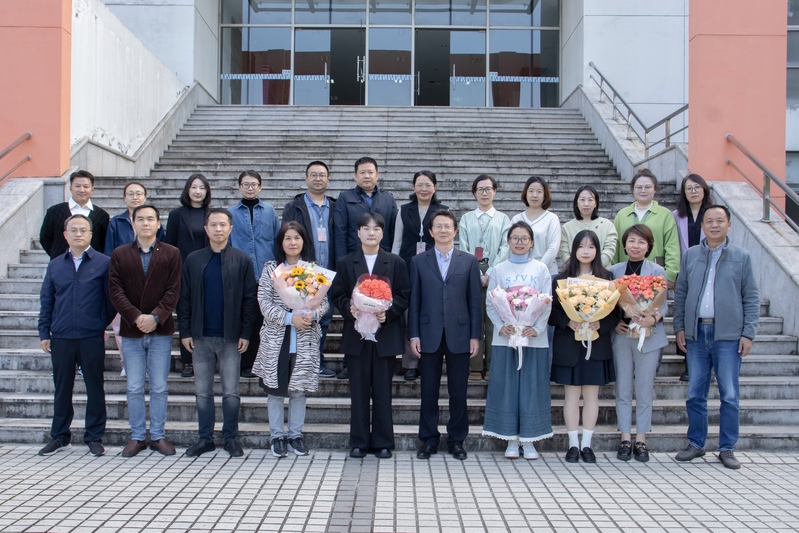 会后,洪霄代表学校向参赛师生送上鲜花并合影留念。