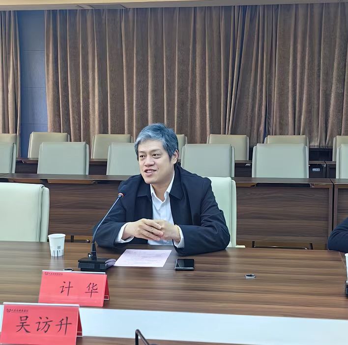 吴访升致欢迎词,他对江苏省演艺集团和九曜教育咨询集团有限公司一行的到来和指导表示衷心的感谢,并简要介绍了学校的发展历程和近年来在教育教学、科研创新、社会服务等方面取得的成就。吴访升表示,校企合作是提升学校办学水平、推动教育教学改革的重要途径,希望与两个集团能够以此次交流为契机,进一步加强合作,共同推动文化、教育事业的繁荣发展。