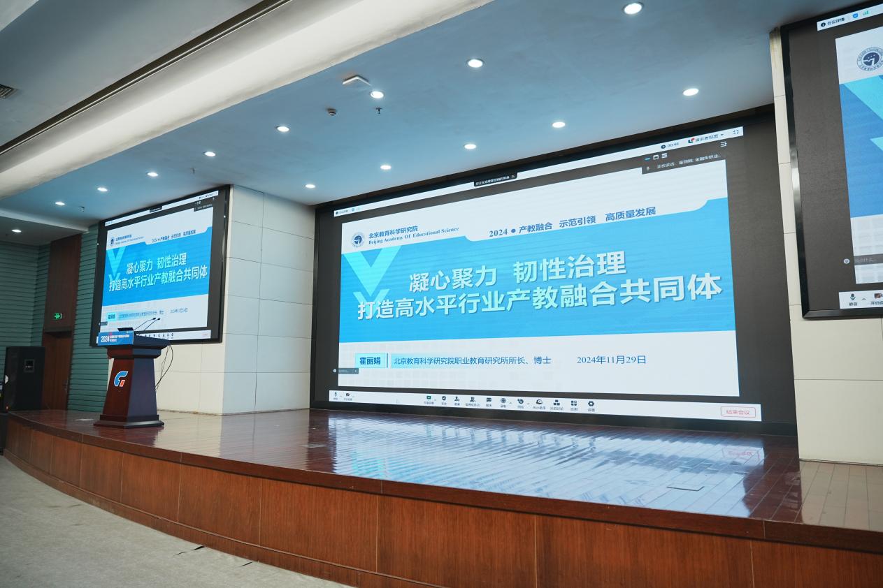 论坛的最后,北京教育科学研究院职业教育研究所所长霍丽娟作了题为《凝心聚力  韧性治理  打造高水平行业产教融合共同体》的报告。她提出了深化产教融合的路径方法与策略:加大区域产教融合促进政策的同步性和执行力度,形成政策合力;厚植企业承担职业教育责任的社会环境;加强参与主体的资源整合能力,提高产教融合资源配置效率和成长性;注重区域产教融合共同体共建共享,形成增强集聚效应的运行机制。