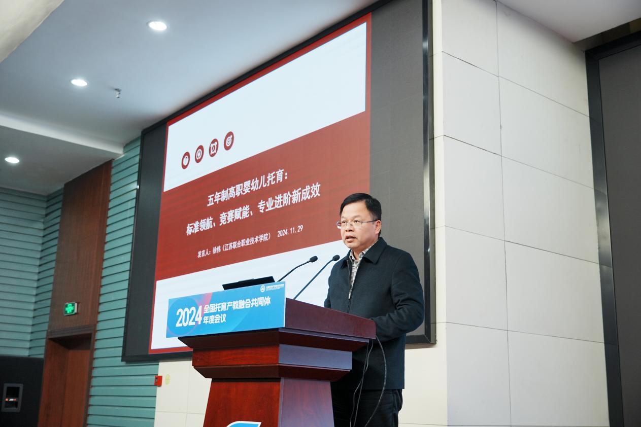 江苏联合职业技术学院副院长徐伟分享了题为《五年制高职婴幼儿托育:标准领航,竞赛赋能,专业进阶新成效》的报告,为托育专业五年贯通“一体化”人才培养体系构建提供了路径参考。
