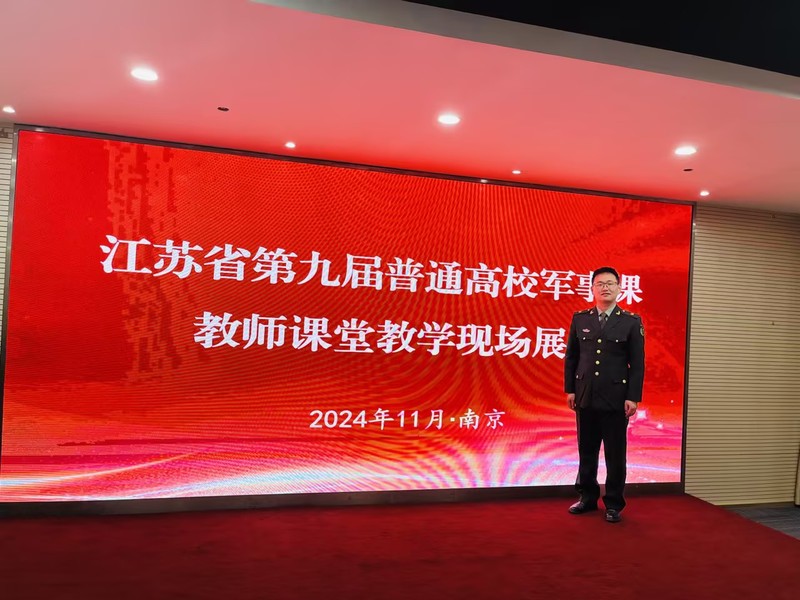 1128日至1211日,由江苏省教育厅主办、江苏省普通高等学校军事课教学指导委员会承办的江苏省第九届普通高校军事课教师课堂教学展示决赛在南京举办。我校通识教育学部语文(军事理论)联合教研室选送的人文与健康学院俞旭老师与全省本科院校同台PK,经过决赛的激烈角逐,荣获二等奖。