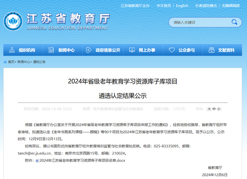 近日,江苏省教育厅公布了2024年省级老年教育学习资源库子库项目认定结果,全省共有64家单位的90个项目脱颖而出,成功上榜。我校再次传来喜讯,创意学院许晓婷、徐静、许婷芳老师携手打造的《中国茶道与生活美学》课程,服装学院黄洁老师主持的《高定手工》课程,双双入选省级老年教育学习资源库子库。这两门特色课程不仅直接入库,还将在“江苏学习在线”与“江苏老年教育”两大学习平台上公开共享,为老年学习者提供丰富的学习资源。这是我校连续两年报送两门课程全部入选并获此殊荣。