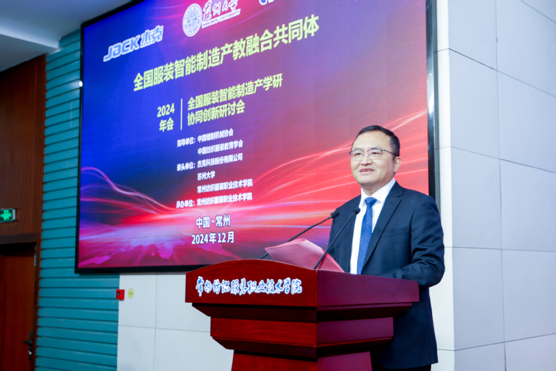在主旨报告中,中国缝制机械协会理事长杨晓京代表协会对年会的成功召开表示祝贺,他强调,未来围绕“为行业培养人才、为企业研发助力”的共同目标,行业、协会与以常纺院为代表的院校,可以深入务实地探索学协、校企、产学研用等形式多样的合作模式。教育部鲁班工坊专业委员会主任委员吕景泉作了《面向世界产教融合的工程实践创新项目(EPIP)—中国职业教育国际化创新实践》专题报告,探讨产教融合在国际化背景下的新路径,为高校提供职业教育国际化的新思路。此外,浙江赛维数字能源总经理潘建国、环思智慧科技有限公司副总裁胡向阳、合肥兄弟服装机械有限公司总经理汪家维、澳炻美盛集团董事长周建良分别作了《双碳浪潮下纺织服装业的绿色转型之路》、《纺织服装企业数字化转型落地方案》、《服装精益生产与智能制造关系》、《新质生产力背景下构建产业集群共享制造的探索与思考》主题报告。最后,江苏纺织工业协会秘书长张仁乐发表了总结讲话。