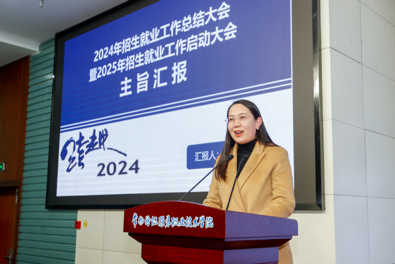 会上,招生就业处处长高妍对年度招生就业工作进行汇报。她以数据为依托,全方位、深层次地剖析了我校招生就业情况,并针对不足,提出了2025年提质增效的具体办法。