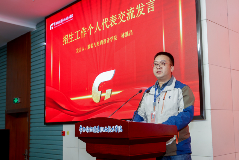 党委副书记王顺明宣读了《关于表彰2024年招生工作先进集体、先进个人的决定》。党委副书记、校长洪霄,纪委书记林素琴,党委委员、组织部部长高江荣,党委委员、宣传部部长夏斌分别为9个先进集体、75名先进个人颁奖。随后,服装与时尚设计学院党总支副书记林继昌、创意设计学院党总支书记祝燕芳和数字商贸学院党总支书记林洁分别作为招生工作、先进集体,就业工作代表进行交流发言,为全体教职工提供了极具实操性与启发性的“招生就业工作宝典”。