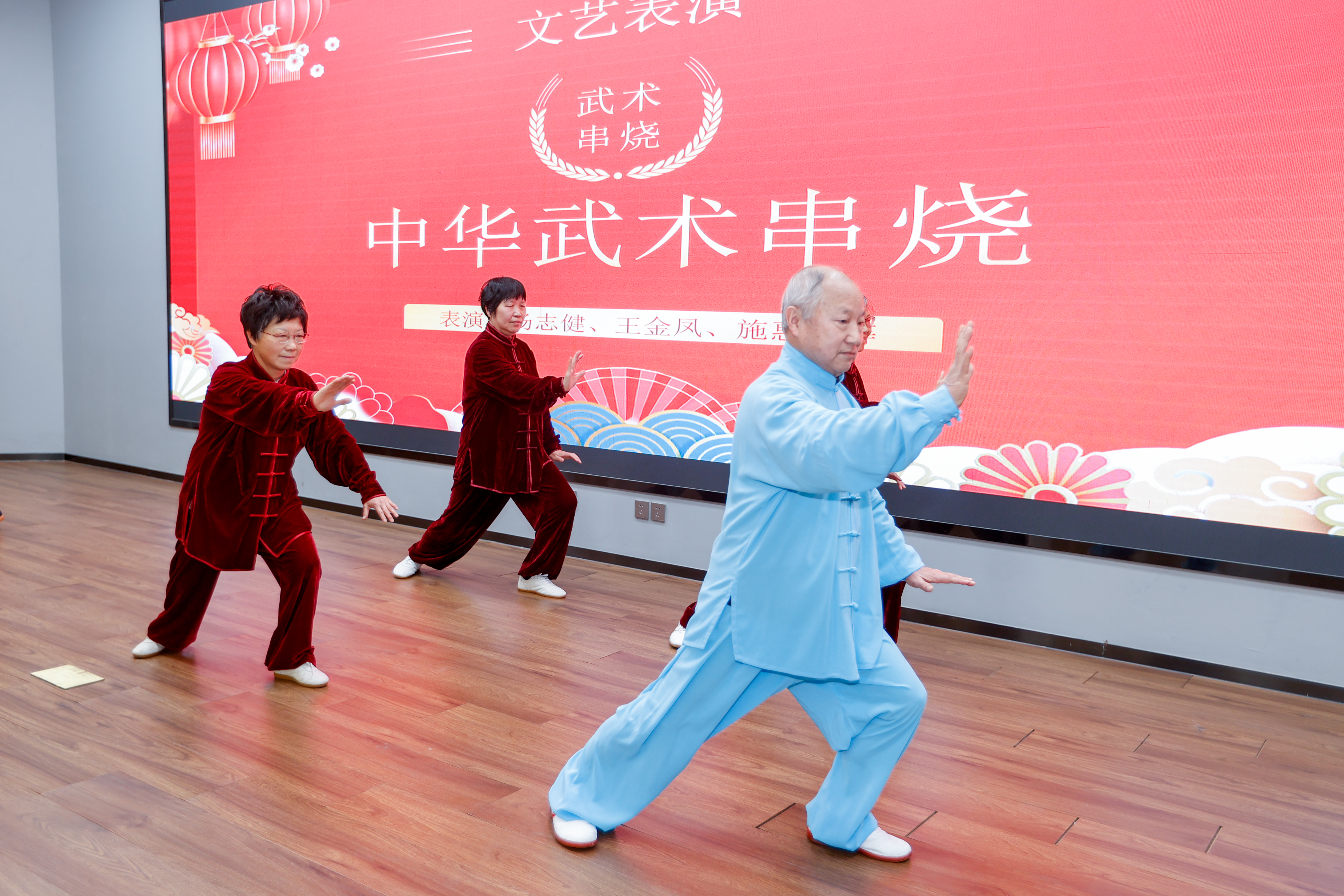精彩纷呈的文艺表演将团拜会的气氛推向高潮。舞蹈《珊瑚颂》通过优美的舞姿和充满活力的表演,展现了退休教职工积极向上、乐观开朗的精神风貌。葫芦丝独奏《雪山姑娘》展示了退休教师的多才多艺。男女声重唱《山楂树》、木兰双扇、太极剑、杨氏太极拳24式、太极柔力球等充分展示了老同志热爱生活的良好精神面貌。