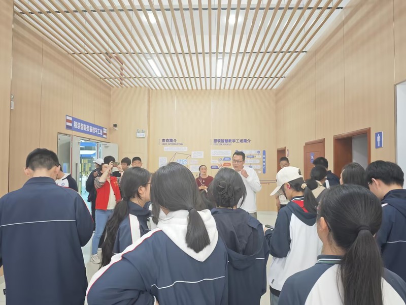 活动中,研学团队参观了纺织科技文化馆、服装智能产线教学工场、文化传承与创新中心。在参观纺织科技文化馆期间,史京军介绍了学校办学特色优势、专业设置与纺织产业工匠人才培养情况,并结合纺织科技文化馆特色主题与学生和家长共同分享交流纺织产业高端化、品牌化、绿色化和融合化的发展方向及发展现状,结合学校近年来招生就业情况说明了职业院校学什么、怎么学、干什么、怎么干;鼓励学生及家长多了解职业教育,选择报考职业院校,就如何进行分科选择、如何志愿填报、就业升学参军等提出了建议。