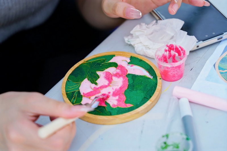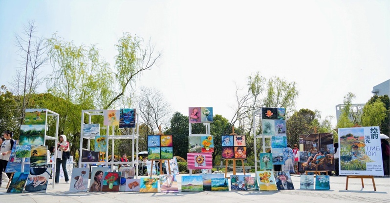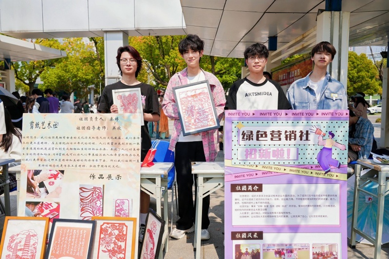 开幕式后,41个静态社团展示区纷纷亮出“看家本领”,通过创意展示、传统文化互动等形式,展现社团的独特魅力。创意学院的艺术心理疗愈站吸引了众多同学驻足,在这里,同学们通过艺术创作舒缓压力、放松身心。数商学院的非遗手作台同样人气爆棚,非遗技艺让同学们感受到传统文化的深厚底蕴。此外,油画社成员以“绘韵流光”为主题的作品展览也吸引了大量目光,一幅幅精美的画作展现了同学们卓越的艺术创造力。活动现场人潮涌动,同学们穿梭于各个展位之间,积极参与互动,感受不同文化与艺术的碰撞。