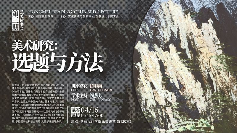 为深化艺术学科研思维、提升教师科研与学术能力,416日下午,创意设计学院第三期弘美读书会在学院智慧教室8130举办。本期读书会特邀中国艺术研究院研究员、博士生导师春海担任主讲嘉宾,以《美术研究:选题与方法》为主题展开学术分享。创意设计学院党总支书记祝燕芳主持活动,全体教师参与学习。