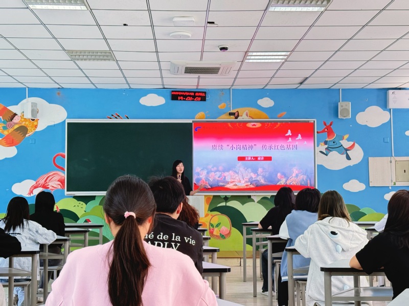 活动现场,智能纺织与材料学院学生工作党支部书记、“六边形” 辅导员工作室负责人应吉老师以“赓续‘小岗精神’传承红色基因”为题,为同学们带来了一场深刻且生动的小岗红色思政课。她深入挖掘小岗村的改革历程,将那段波澜壮阔的历史徐徐展开,生动讲述了小岗村村民们敢于创新、勇于改革的壮举,让同学们深刻体会了“小岗精神” 的内涵与力量。