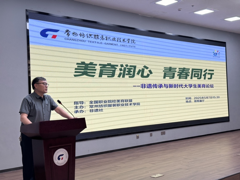 为弘扬中华优秀传统文化,深化美育实践内涵,5月7日下午,“美育润心青春同行——非遗传承与新时代大学生美育论坛”在我校领秀展厅隆重举行。活动由非遗社承办,通过学生美育故事分享、非遗知识问答等环节,搭建“以美润心”的实践平台。全国职业院校美育联盟秘书长、学校美育联合教研室主任顾明智教授应邀出席,百余名学生代表共同参与,“共话非遗之美、共探美育之魅”。