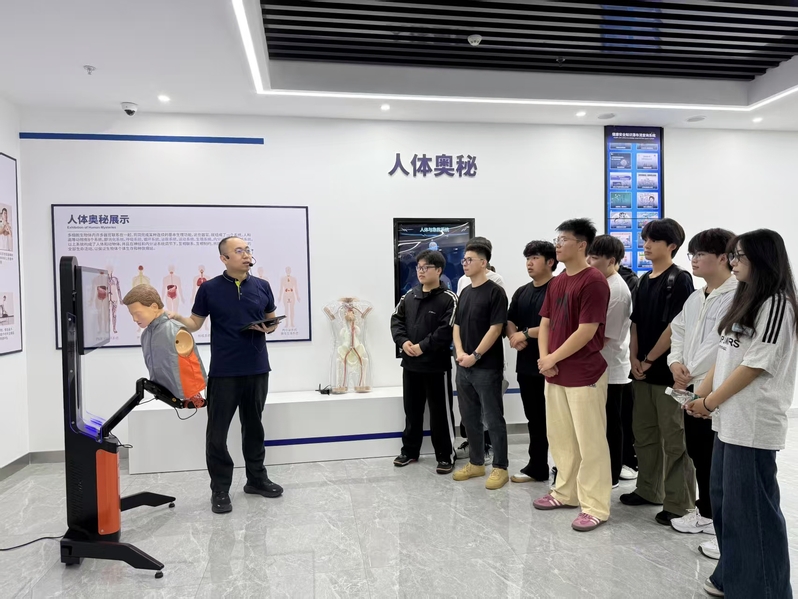 启动仪式后,常州市医疗急救中心培训科科长王帆带领学员们参观了急救科普馆,并带来一场生动的急救现场教学。他结合真实案例,讲解了心肺复苏(CPR)、AED使用、创伤处理等核心技能的操作要点,并通过VR体验、模拟操作等方式沉浸式学习急救知识。王帆提到:“急救不仅是技术,更是与时间赛跑的使命。每一名急救员都可能成为挽救生命的关键一环。”学员代表阳玉婷同学表示:“这次培训让我意识到急救技能的重要性。未来我将全力以赴,为校园安全贡献自己的力量。”