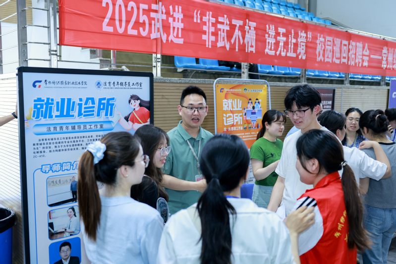 招聘会现场气氛热烈,来自常州科教城六所高校的近7000名2025届、2026届毕业生踊跃参会。为提升就业服务效能,活动特别设置三大特色专区:AI就业赋能专区提供智能化就业信息查询和面试辅导服务;“就业创业在江苏”政策咨询专区,邀请武进、钟楼人才专家现场答疑;职业指导专区则专注于提升毕业生求职竞争力。