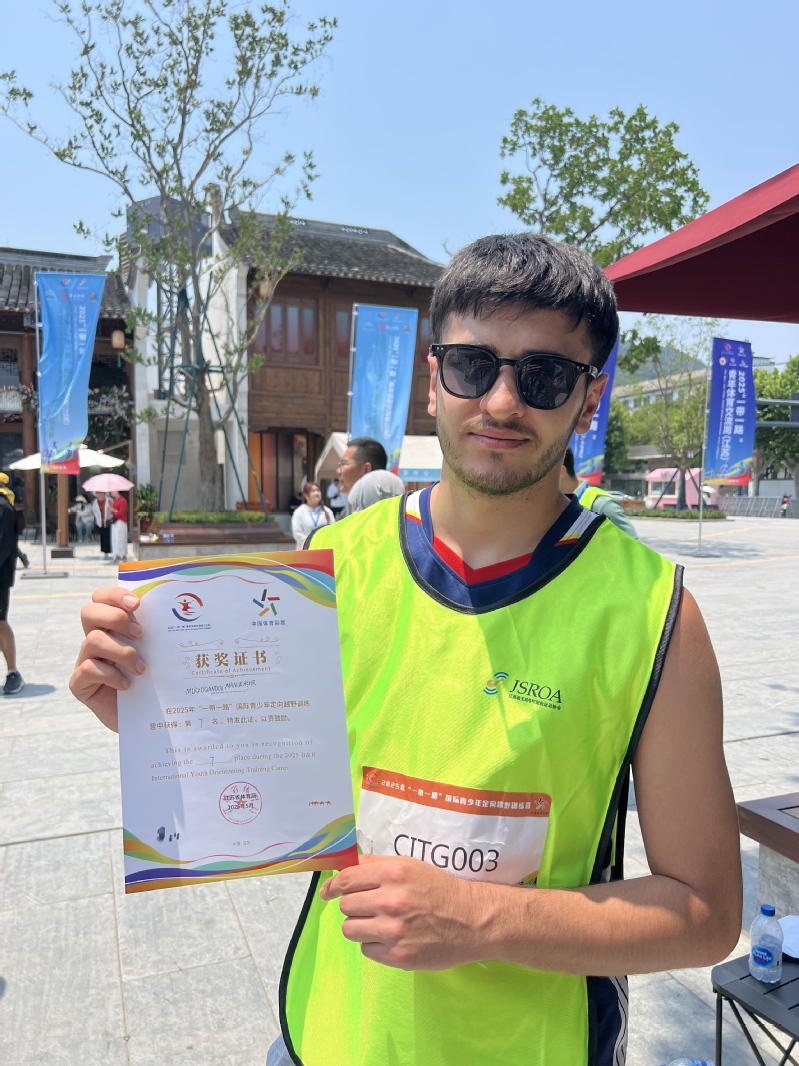 5月20日-27日,2025“一带一路”青年体育交流周(江苏)活动在江阴飞马水城举办。本次交流周活动由国家体育总局对外体育交流中心、江苏省推进“一带一路”建设工作领导小组办公室指导,江苏省体育局、江苏省教育厅、江苏省人民政府外事办公室主办,江苏省国际体育交流中心、无锡市体育局、江阴市人民政府承办。我校选派来自孟加拉国、马来西亚、塔吉克斯坦等3个国家的11名国际学生参与本届活动的定向越野分项。塔吉克斯坦籍留学生马努获得2025“一带一路”国际青少年定向越野训练营第7名,我校获得优秀组织奖。