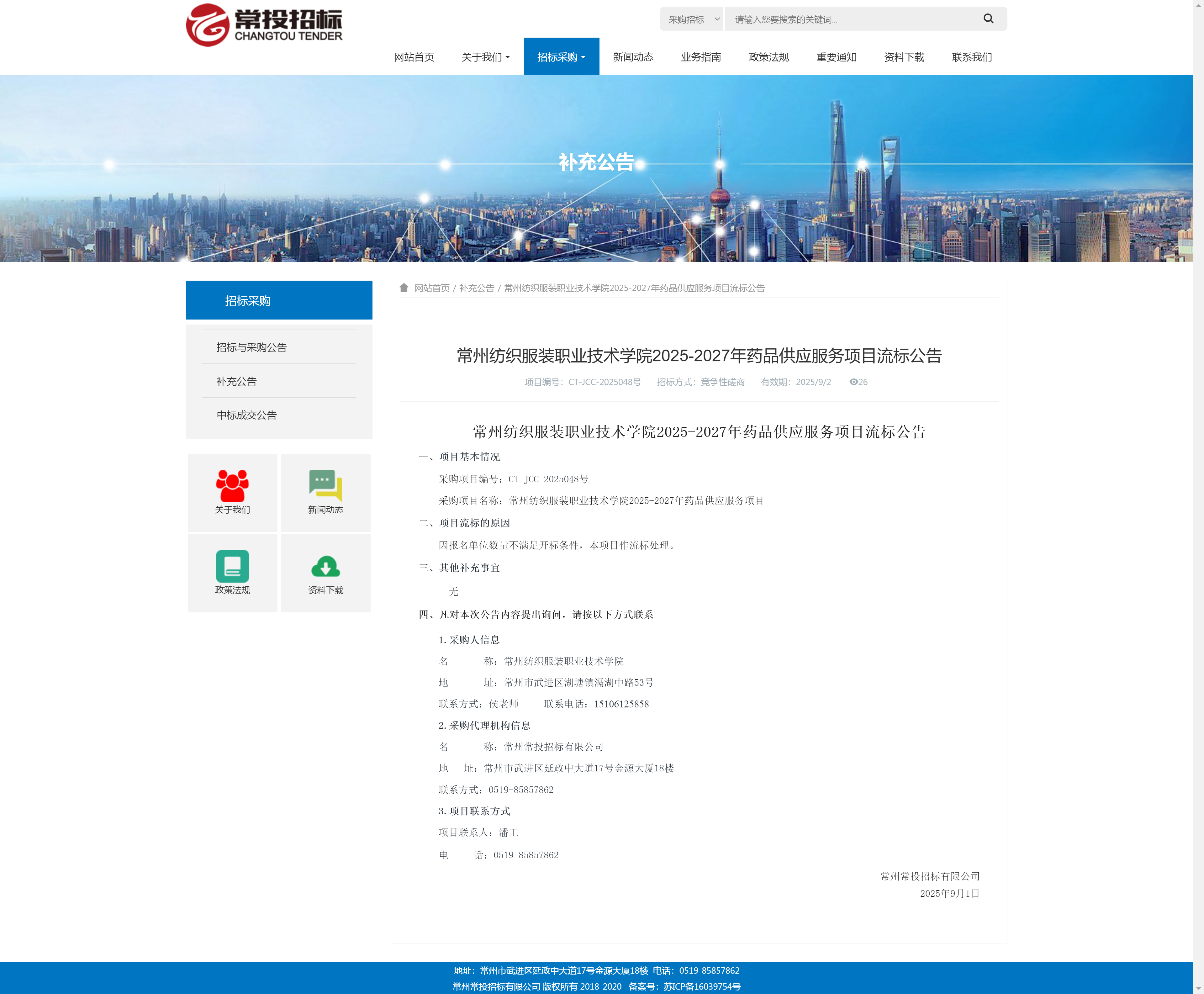 【流标公告】2025-2027年药品供应服务项目流标公告(第二次)