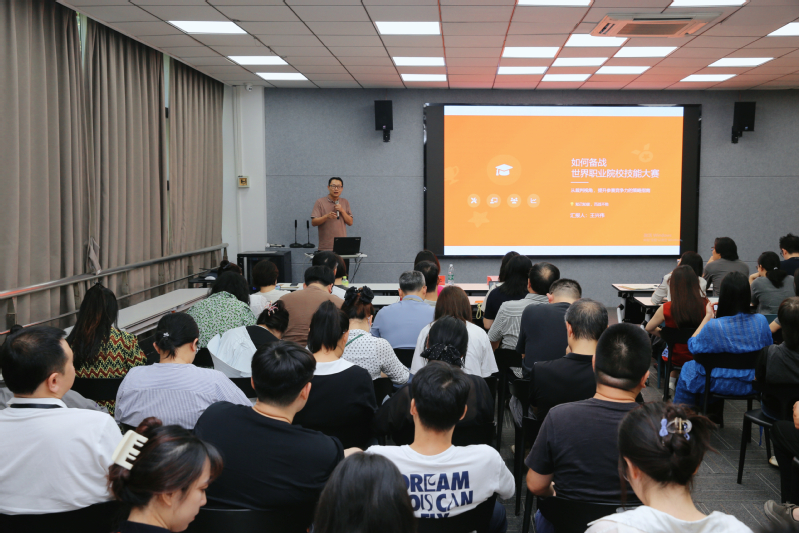 会议首先邀请了多次担任过国赛、世赛裁判的数字商贸学院张茹副教授,产教融合处王兴伟副处长从指导学生参加技能大赛、担任裁判执裁赛事的角度给创意设计学院老师们做了精彩分享。张茹从比赛项目的遴选,跨学院团队的组建、方案演练迭代到场景化汇报展示进行了系统分析与讲解。她特别强调:“比赛就是要把校企合作的真实项目植入训练模块,让学生在解决实际问题的过程中提升专业能力。竞赛不仅是学生技能的试金石,更是教师教学创新的催化剂。”其分享的“三维动态优化模型”(技术维度、艺术维度、商业维度)更是为学院备赛团队提供了可直接应用的实战框架。王兴伟从裁判视角切入,提出“竞赛竞争力提升五维策略”:精准对标国际标准优化训练体系、构建“企业导师+专业教师”双轨制指导模式、强化跨学科团队协作能力、注重数据化过程管理、打造具有学院特色的视觉化汇报风格。建议学院未来可以把教师教学能力比赛、学生技能大赛、创新创业大赛串联起来进行谋划,挖掘好项目、锤炼好团队,取得好成绩。