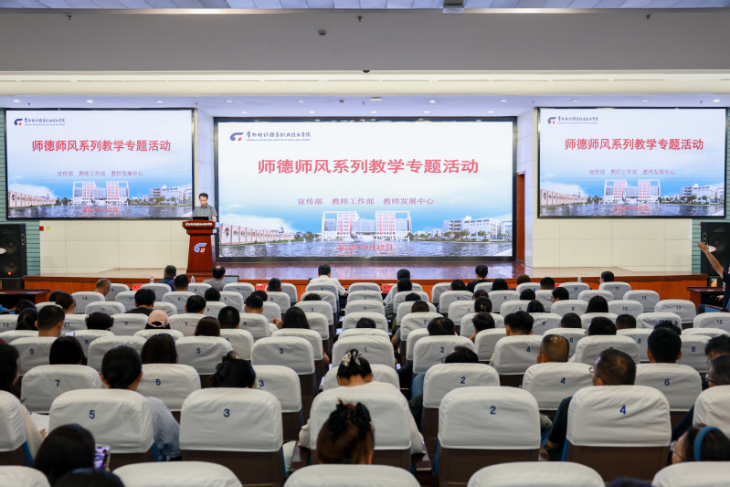 为深入学习党的二十大精神,全面贯彻习近平总书记关于教育的重要论述,9月17日,学校开展了以 “弘扬教育家精神,严守教学规范底线,提升数字化教学能力”为主题的师德师风系列教学专题活动。党委副书记王顺明,党委委员、副校长马昀,教务处处长王一凡、副处长许晓宇、于俊,人事处副处长陈雪华、二级学院领导、相关职能部门、全体教师参加了活动。活动由教务处处长王一凡主持。