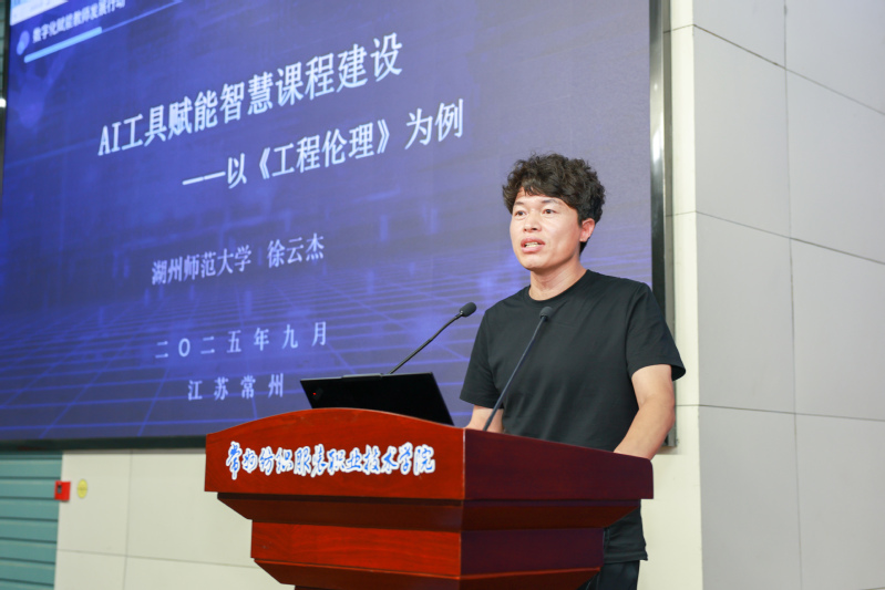 本次活动还邀请了原湖州师范大学教师教学发展中心主任徐云杰教授作 “AI工具赋能智慧课程建设——以《工程伦理》为例”的专题讲座。徐教授通过分享具体案例,展示了AI工具在课程建设中的应用,为教师们提升数字化教学能力提供了新思路和新方法。