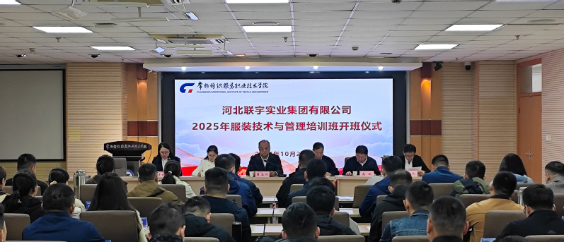 10月21日上午,河北联宇实业集团有限公司2025年《服装技术与管理》培训班开班仪式在1号楼校务中心1750举行。河北联宇实业集团有限公司党委副书记、政委董玉川、劳动改造管理处三级调研员高斌、四级主任科员孙浩智、校党委委员、副校长张文明、服装与时尚设计学院、继续教育学院等相关负责人以及来自河北联宇实业集团有限公司第八期的48名学员出席会议。会议由服装与时尚设计学院院长袁红萍主持。